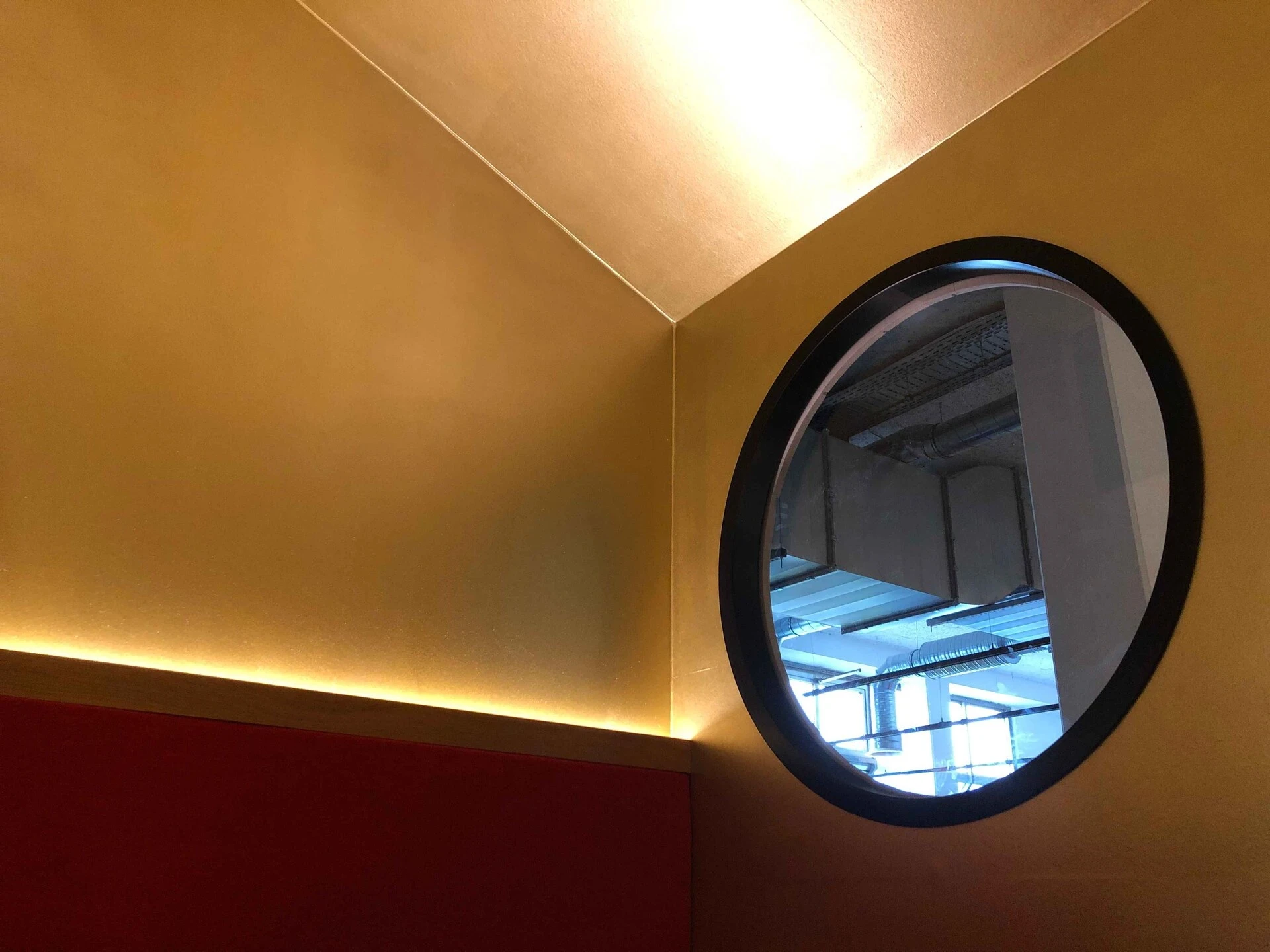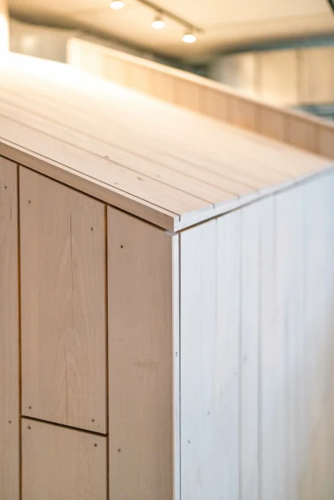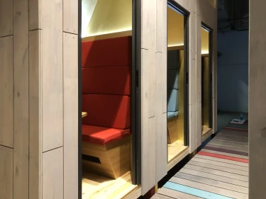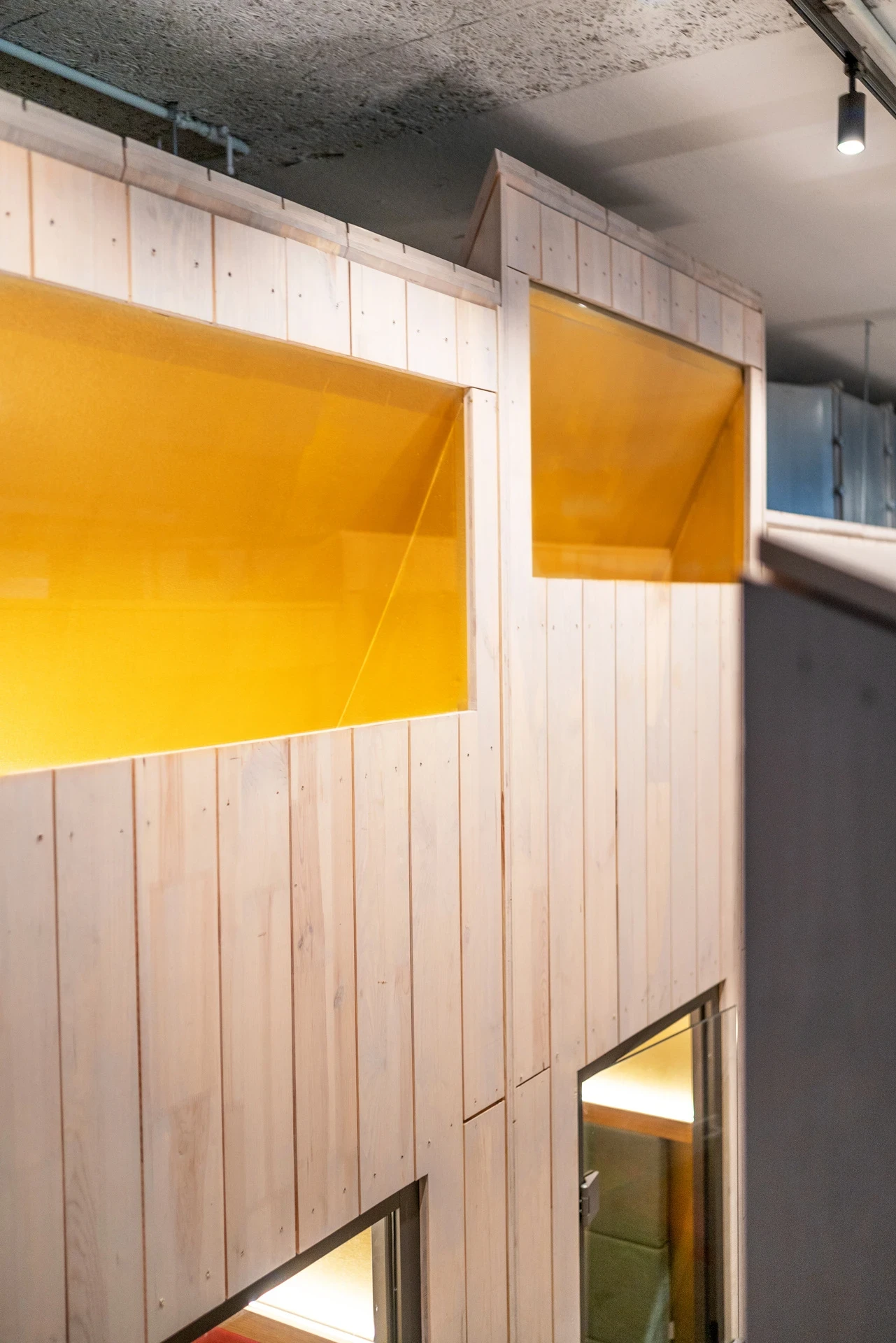 Inspiriert von Berghütten und konstruiert wie ein Bootshaus bieten unsere Fokusbereiche eine besondere Lösung: Entkoppelte Innen- und Außenwände, Schallschutztüren und eine aktive Belüftung ermöglichen konzentriertes Arbeiten über Stunden hinweg – vollkommen diskret.