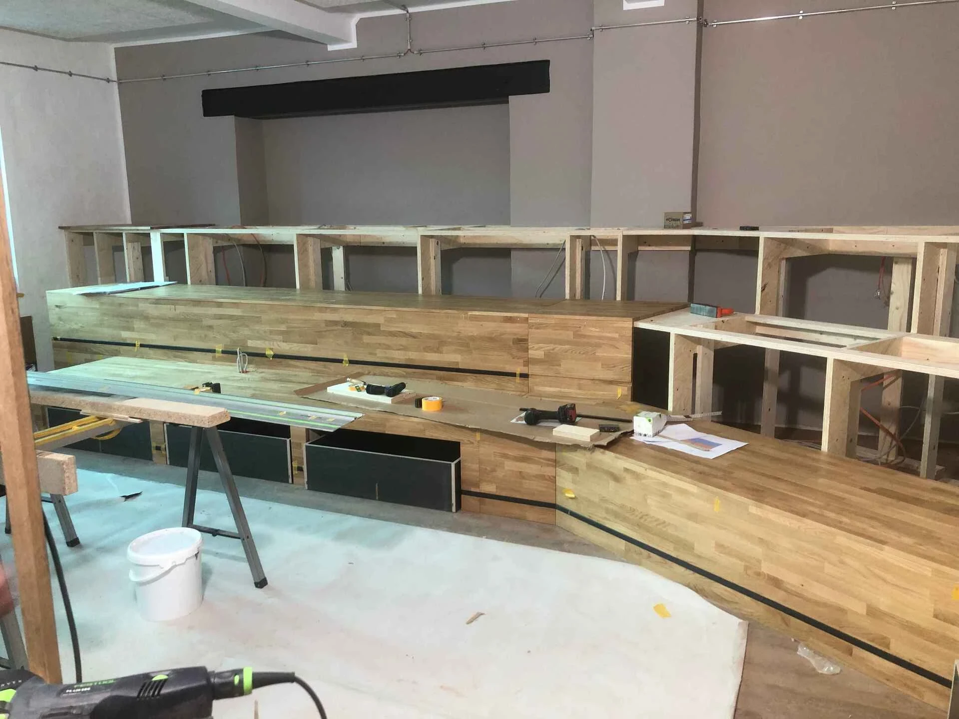 Ihre CNC-gefräste Unterkonstruktion sorgt für höchste Präzision und eine effiziente Montage. Integrierte Steckdosen ermöglichen kollaboratives Arbeiten, während Schubkästen im unteren Bereich Stauraum für Polster und Zubehör bieten. Wartungsöffnungen und Revisionsfähigkeit sind selbstverständlich mitgedacht.